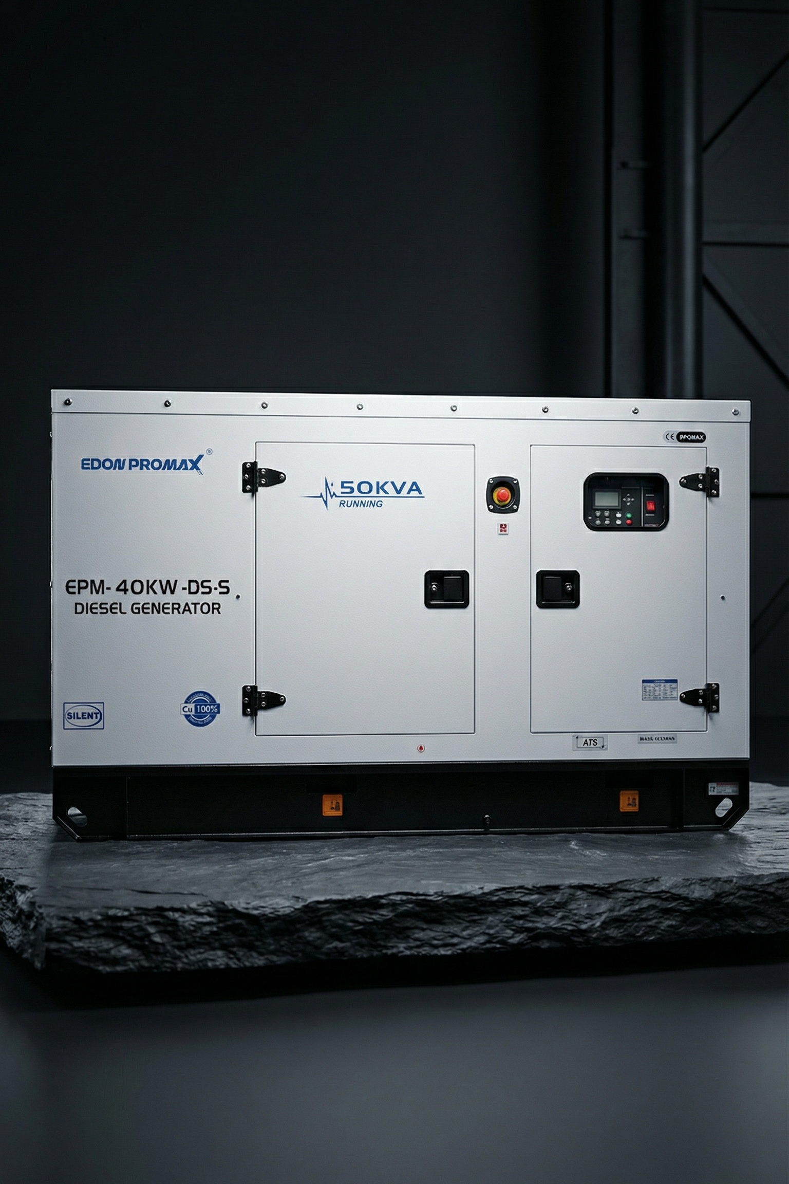 توان 40 کیلووات (50 کاوا) این ژنراتور برای تأمین برق کارگاهها، کارخانههای کوچک، ساختمانهای اداری، مراکز درمانی و پروژههای عمرانی کاملاً مناسب است.
