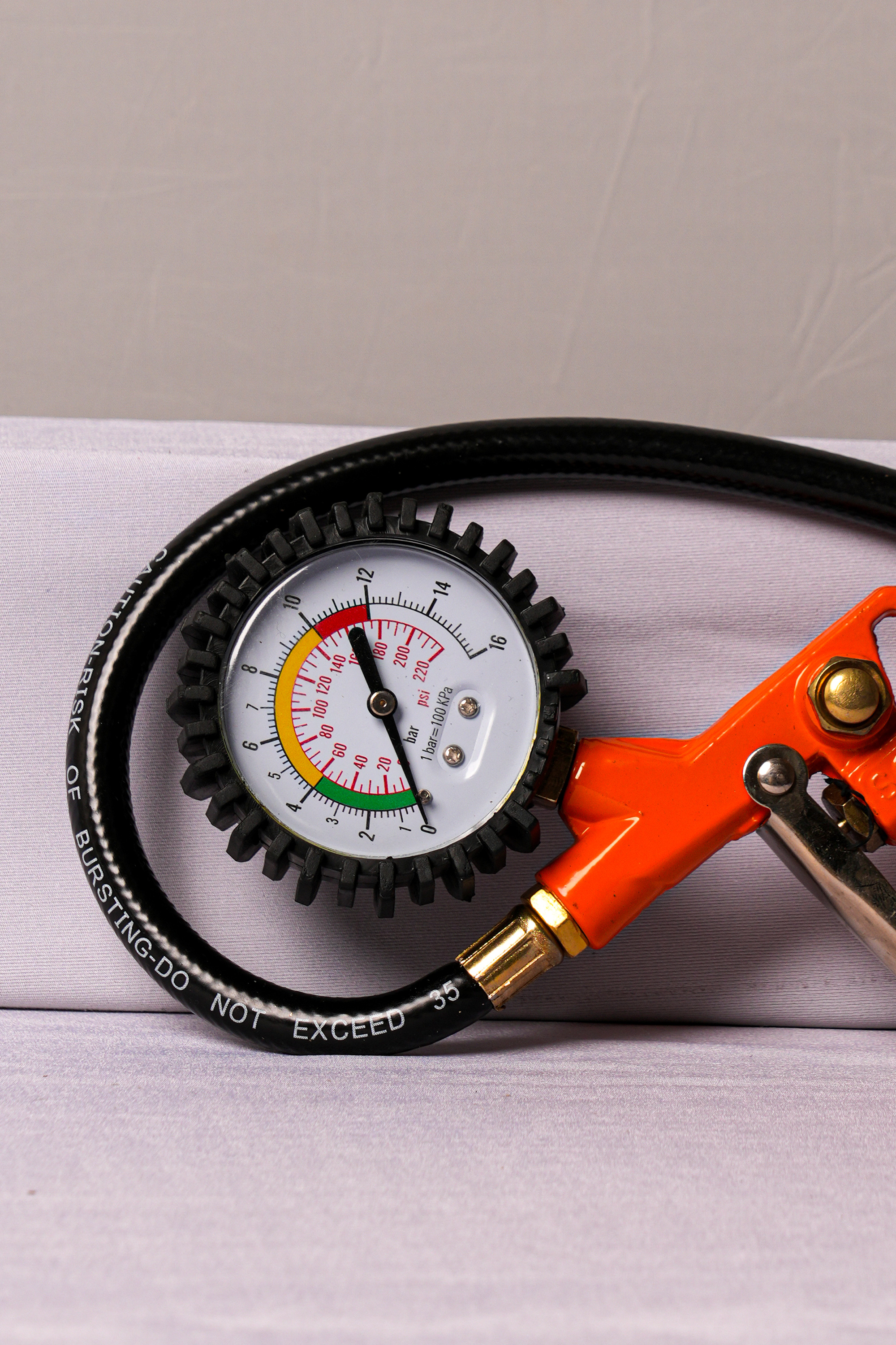 ⚙️ دقت گیج: صفحه مدرج واضح با نمایش PSI و Bar، خواندن فشار باد را ساده و دقیق میکند.