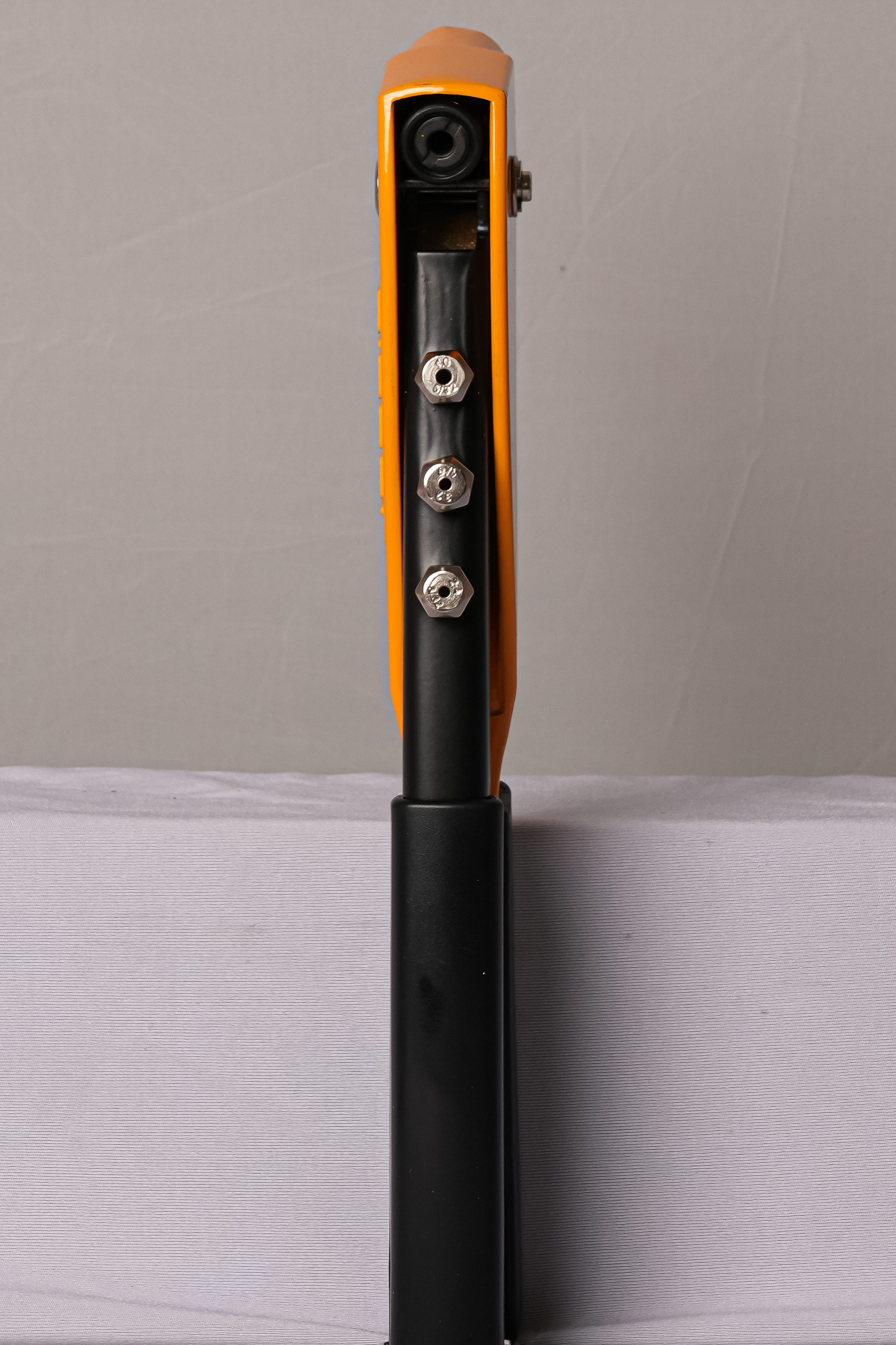 بدنه این انبر پرچ از آلیاژ فلزی مستحکم ساخته شده و با رنگ کورهای نارنجی پوشش داده شده است که علاوه بر زیبایی، مقاومت خوبی در برابر زنگزدگی و خط و خش دارد. ضخامت ورق بدنهی انبر نشاندهنده طول عمر بالای آن در استفادههای طولانیمدت است.