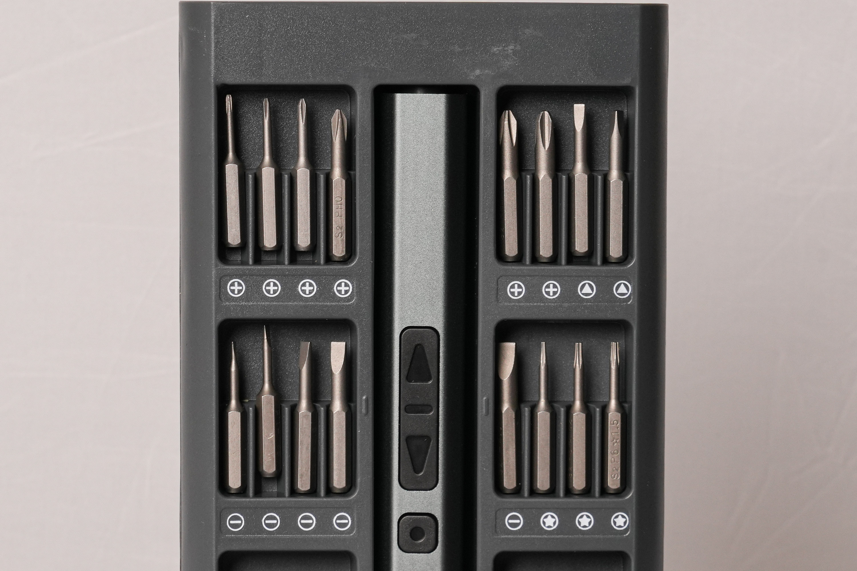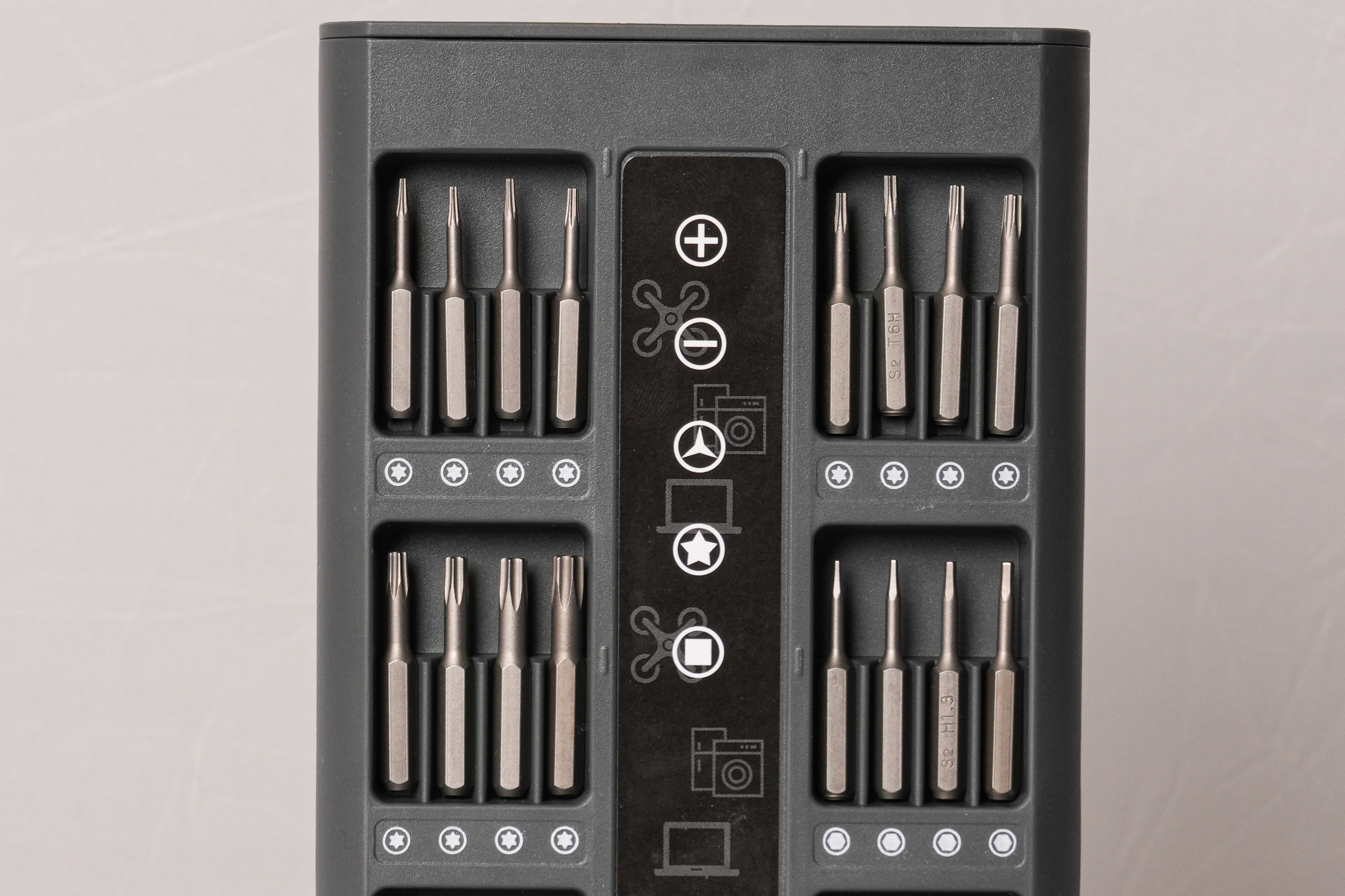 آنچه این کیت را به شدت متمایز میکند، وجود تنوع بینظیری از سریهای پیچگوشتی درون یک کیسهی مگنتی و مرتب است. تمامی این سریها از آلیاژ مرغوب S2 ساخته شدهاند که مقاومت فوقالعادهای در برابر خوردگی و تغییر شکل دارند. 📏 وجود قطعه مگنتایزر/دیمگنتایزر در جعبه به شما کمک میکند تا خاصیت آهنربایی سریها را بنا به نیاز خود تقویت یا خنثی کنید. همچنین تعبیه چراغ LED در قسمت جلویی دستگاه، دید کاملی را در محیطهای کمنور و روی بردهای شلوغ فراهم میآورد. 💡