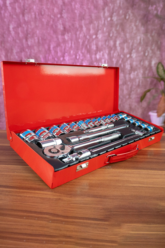 ست بکس کروم وانادیوم ۲۴ پارچه مدل CR-V در جعبه فلزی قرمز مقاوم