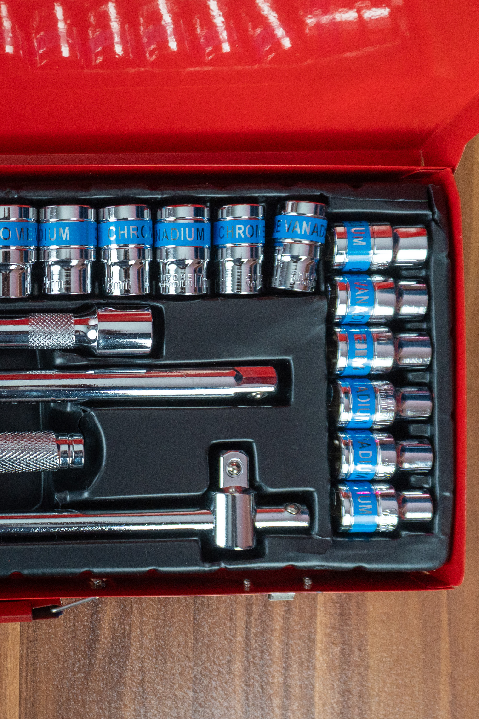 ست بکس کروم وانادیوم ۲۴ پارچه مدل CR-V در جعبه فلزی قرمز مقاوم