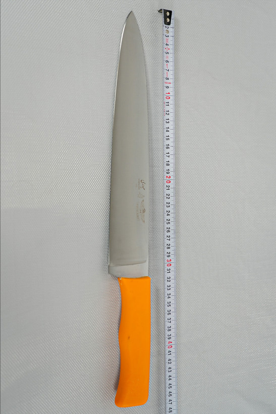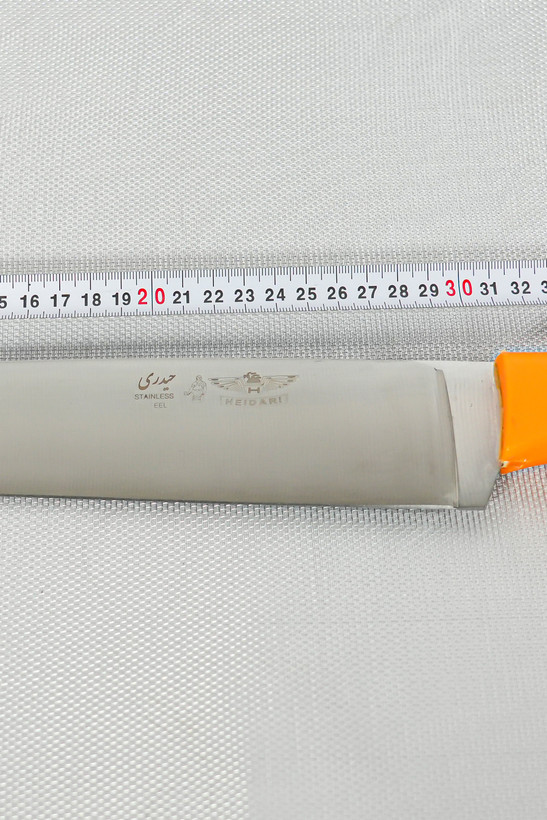 چاقوی (برگ زنی سایز 12) قصابی حیدری سایز ۱۴ دسته پلاستیکی نارنجی مدل Stainless Steel- کد 404