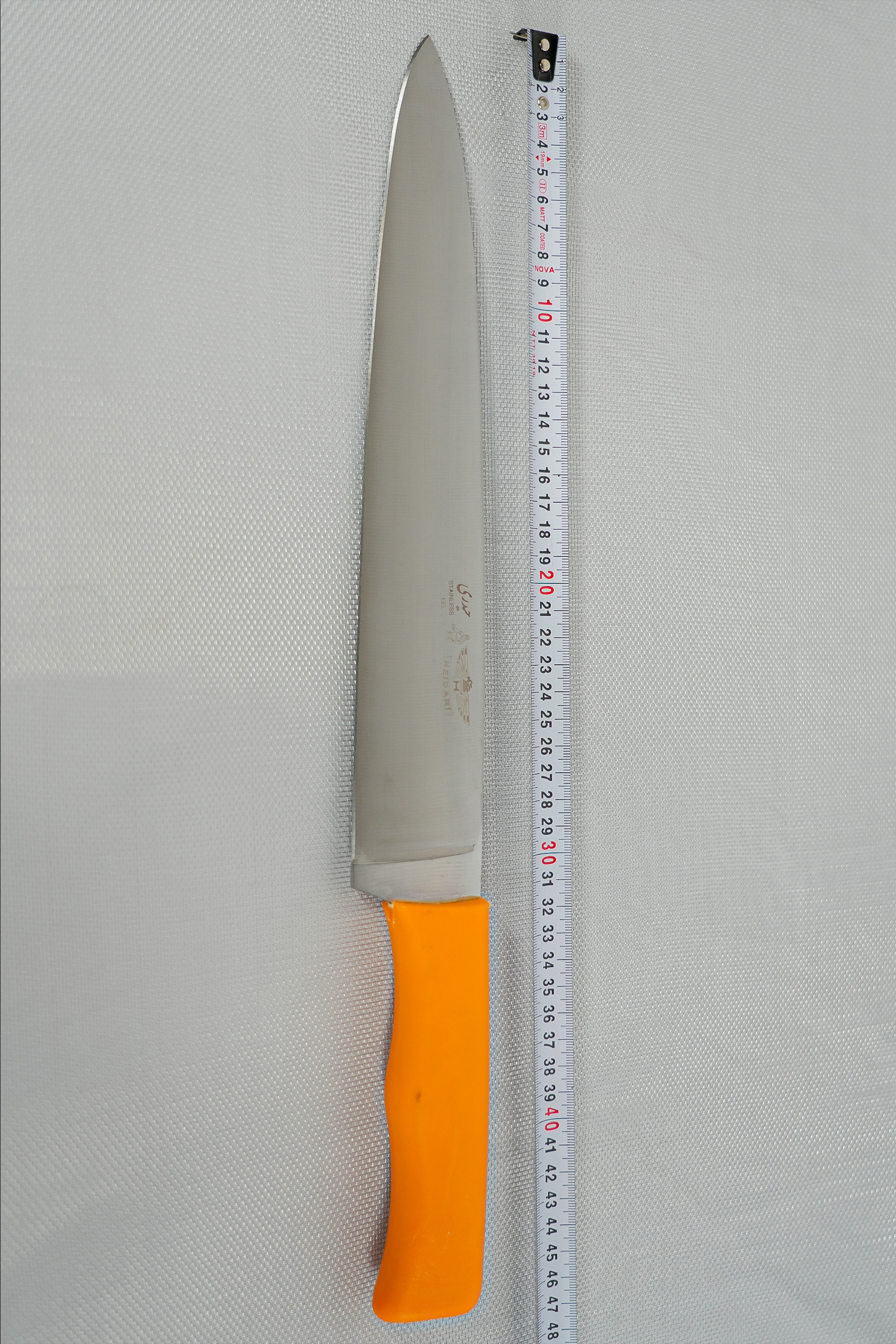 چاقوی (برگ زنی سایز 12) قصابی حیدری سایز ۱۴ دسته پلاستیکی نارنجی مدل Stainless Steel- کد 404