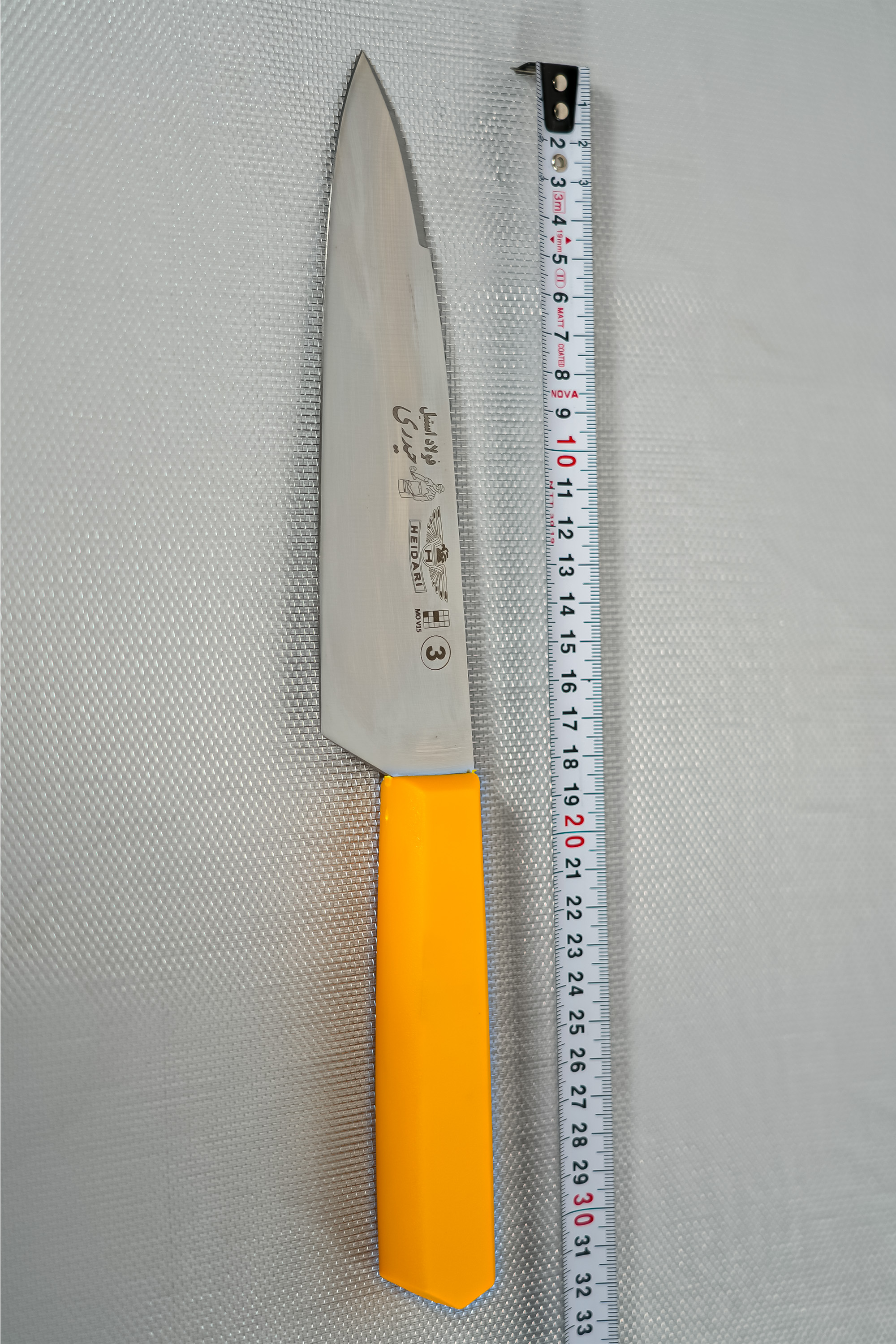 چاقوی (راسته ای سایز 3) آشپزخانه حیدری سایز ۳ دسته پلاستیکی نارنجی مدل MO V15 - کد 407