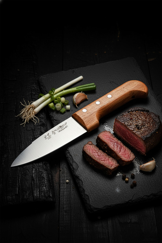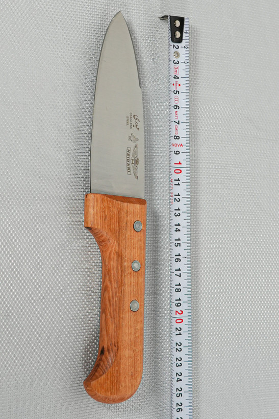 طراحی دسته چوبی علاوه بر ظاهر زیبا، در استفاده طولانیمدت احساس خستگی کمتر ایجاد میکند. قوس انتهایی دسته به محکم ماندن چاقو در دست کمک کرده و سه پرچ فلزی، ایمنی کامل هنگام سلاخی را تضمین میکند.