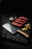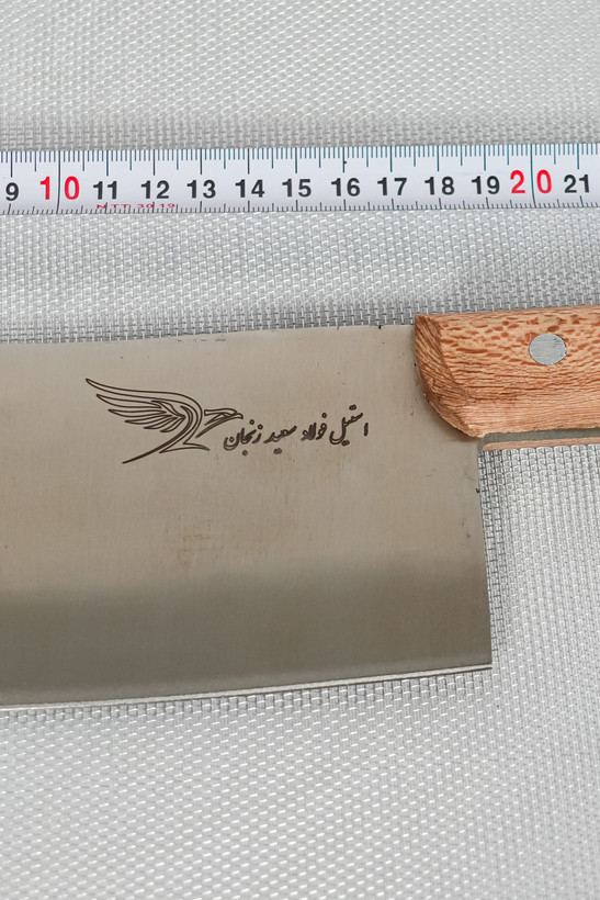 ⚙️ از نظر کیفیت ساخت، تیغه این مدل از استیل فولاد زنجان تولید شده؛ یعنی هم سختی بالا دارد، هم دیرتر کند میشود. لبهی صاف و سنگین تیغه باعث میشود هنگام برخورد با گوشت یا مواد سخت، ضربه با کمترین نیروی اضافی انجام شود.