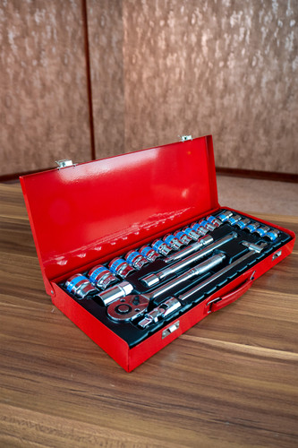 ست بکس کروم وانادیوم ۲۴ پارچه مدل CR-V در جعبه فلزی قرمز مقاوم