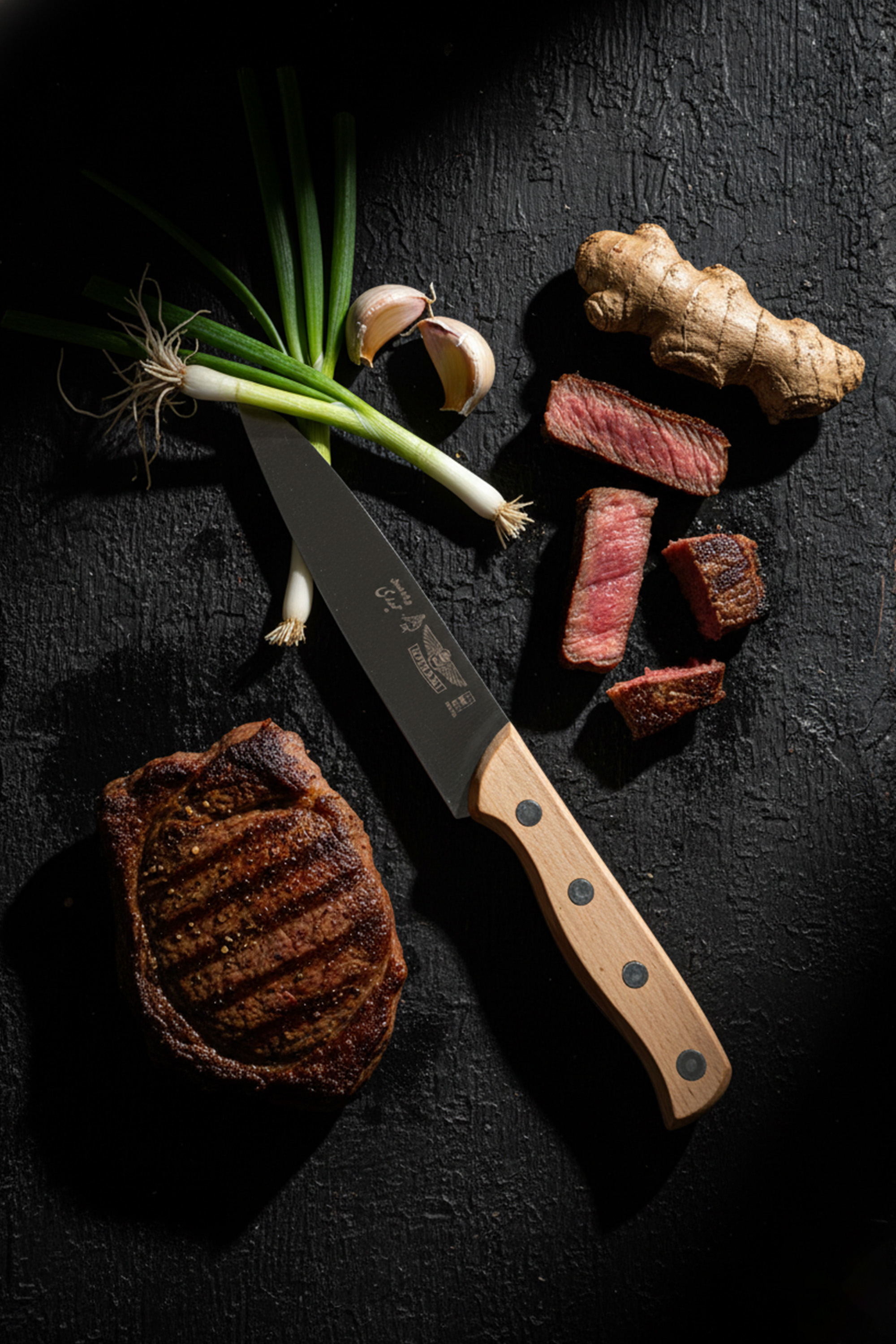 ساتور آشپزخانهای فولاد استیل حیدری سایز ۶ دسته چوبی - کد ۴۲۳